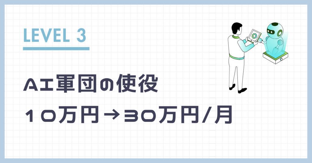 LEVEL 3:【仕組み化】AI軍団の使役(10万円→30万円/月)